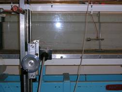 Ved anvendelse af denne metode er forskydningsspændingen bestemt af friktionshastigheden, som er beregnet af Nikuradus’ ligning for strømning over ru flade. For at beregne friktionshastigheden er der, ved hjælp af en laser gennemført målinger af hastighedsprofilet. Måling med laseren ses på Figur 2.