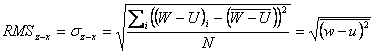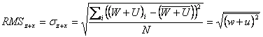 RMS-værdierne og spredningen er dermed bestemt af hastighedsmålingerne i henholdsvis (z+x)-retningen og (z-x)-retningen som nedenstående.