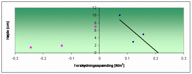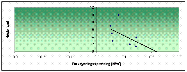 Af forskydningsspændingerne på Figur 8 er der optegnet en tendenslinje. Tendenslinjen er